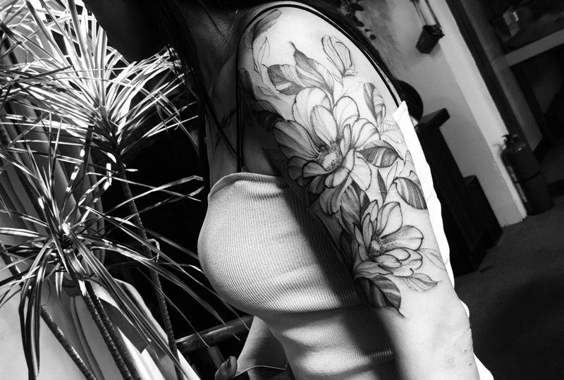• 女性大花胸纹身_43张霸气漂亮的女性大花胸纹身图案作品