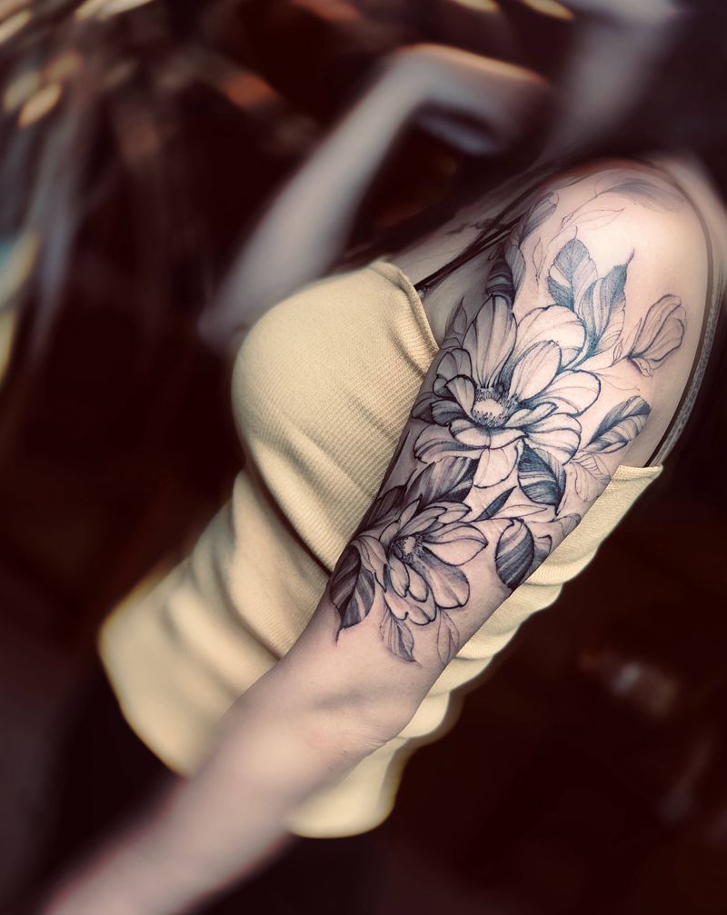 • 女性大花胸纹身_43张霸气漂亮的女性大花胸纹身图案作品