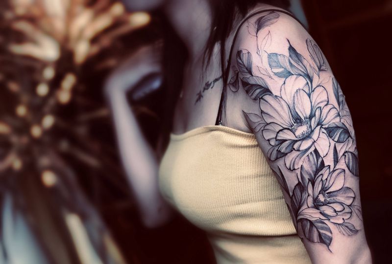 • 女性大花胸纹身_43张霸气漂亮的女性大花胸纹身图案作品