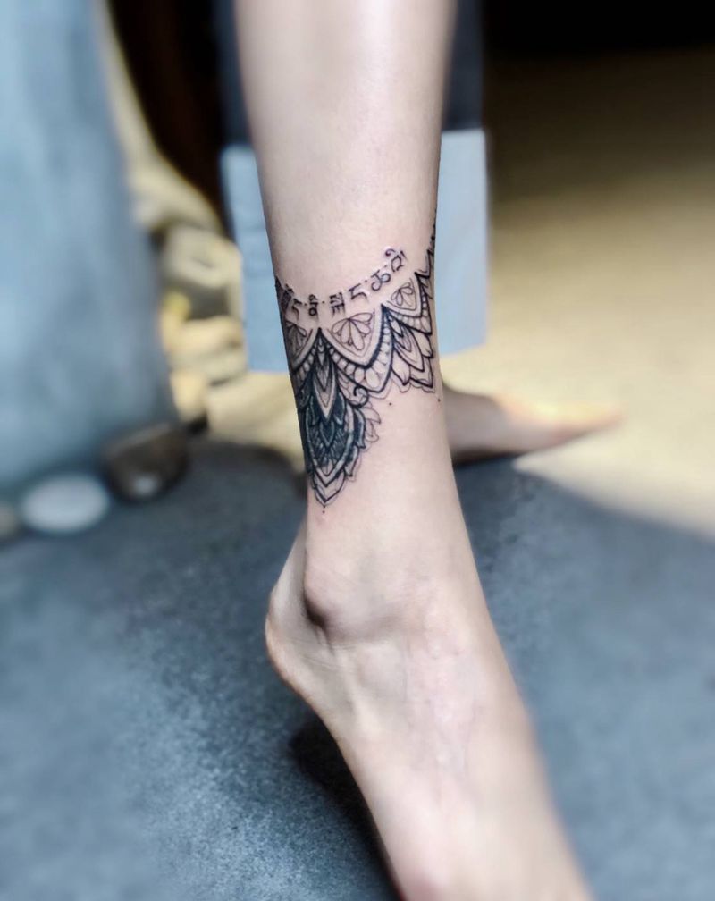 旧图覆盖纹身图片_腿部点刺几何纹身图案