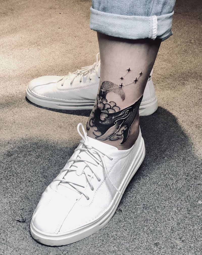 疤痕覆盖纹身图片_脚部点刺Old School纹身图案