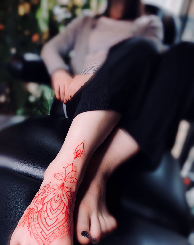 当前位置: 首页 >广东省广州市纹身店-東刺青纹身工作室纹身图案>美艳不失优雅纹身图片_脚部点刺几何纹身图案