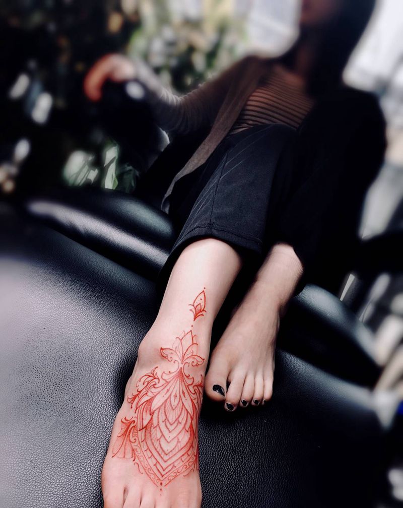 美艳不失优雅纹身图片_脚部点刺几何纹身图案