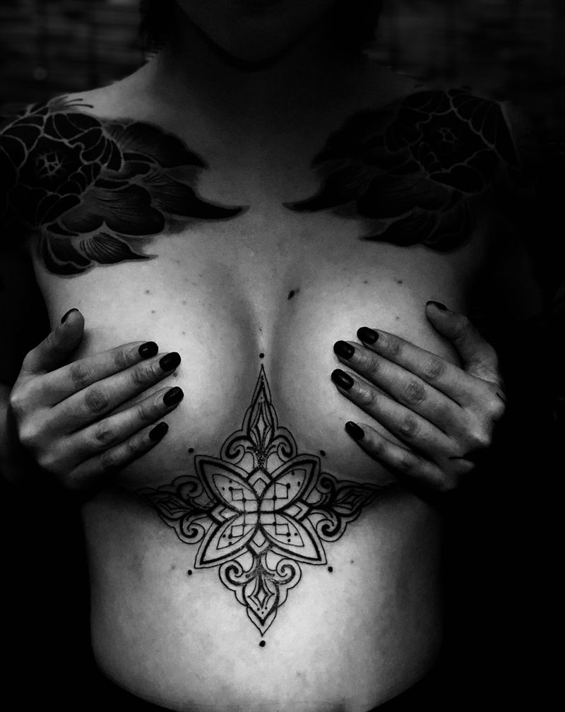 • 女性大花胸纹身_43张霸气漂亮的女性大花胸纹身图案作品