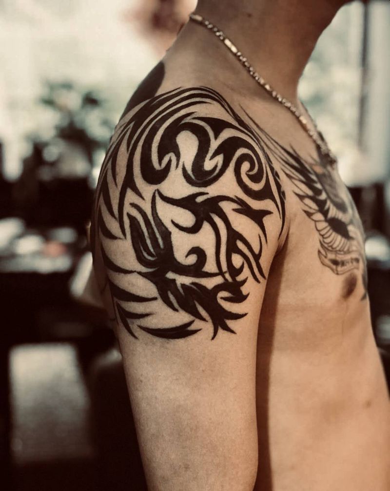 • 纹身吧推荐的披肩图腾半胛纹身图案作品展示