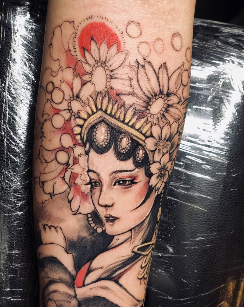 当前位置: 首页 >广东省广州市纹身店-東刺青纹身工作室纹身图案>花旦未完纹身图片_手臂点刺新传统纹身图案