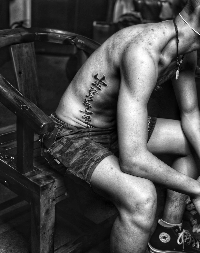 当前位置: 首页 >广东省广州市纹身店-東刺青纹身工作室纹身图案>硬汉生死看淡纹身图片_腰部水墨纹身图案