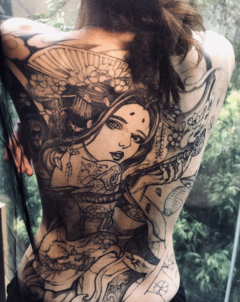 当前位置: 首页 >广东省广州市纹身店-東刺青纹身工作室纹身图案>艺妓纹身图片_背部新传统纹身图案