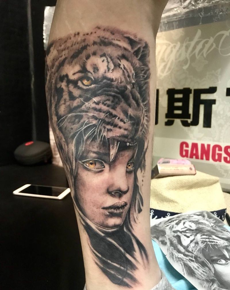 当前位置: 首页 >广东省广州市纹身店-刺青小分队纹身图案>老虎女纹身图片_腿部欧美写实纹身图案