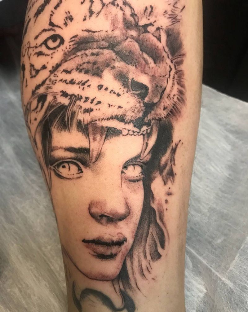 当前位置: 首页 >广东省广州市纹身店-刺青小分队纹身图案>老虎女纹身图片_腿部欧美写实纹身图案