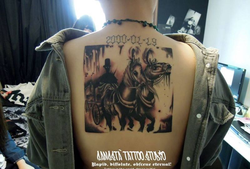 • 黑灰满背纹身图案