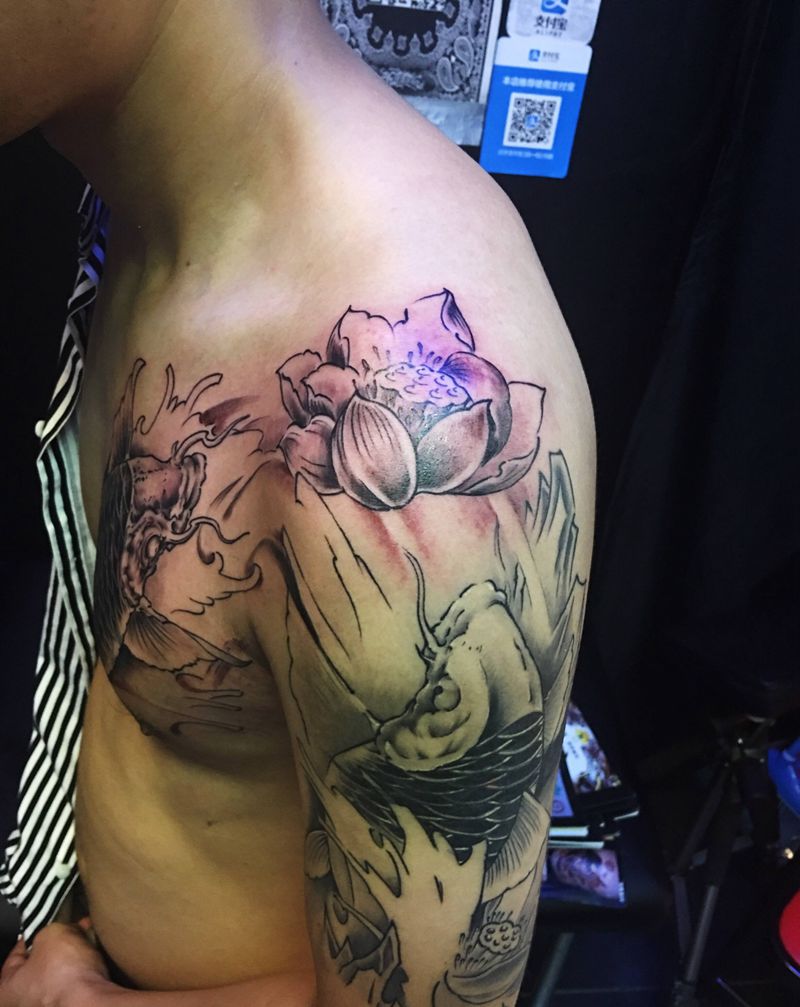 鲤鱼遮盖纹身图片_成品胸部手臂传统动物纹身图案