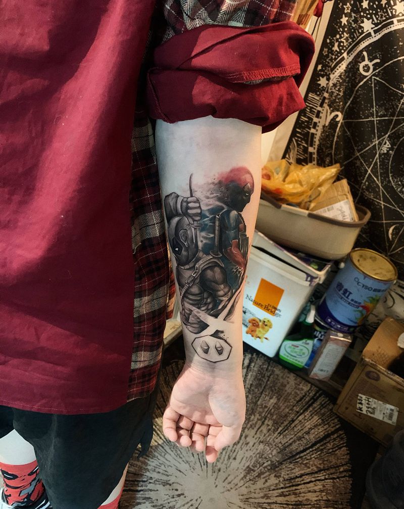 死侍#漫威纹身图片_手部手臂欧美写实纹身图案
