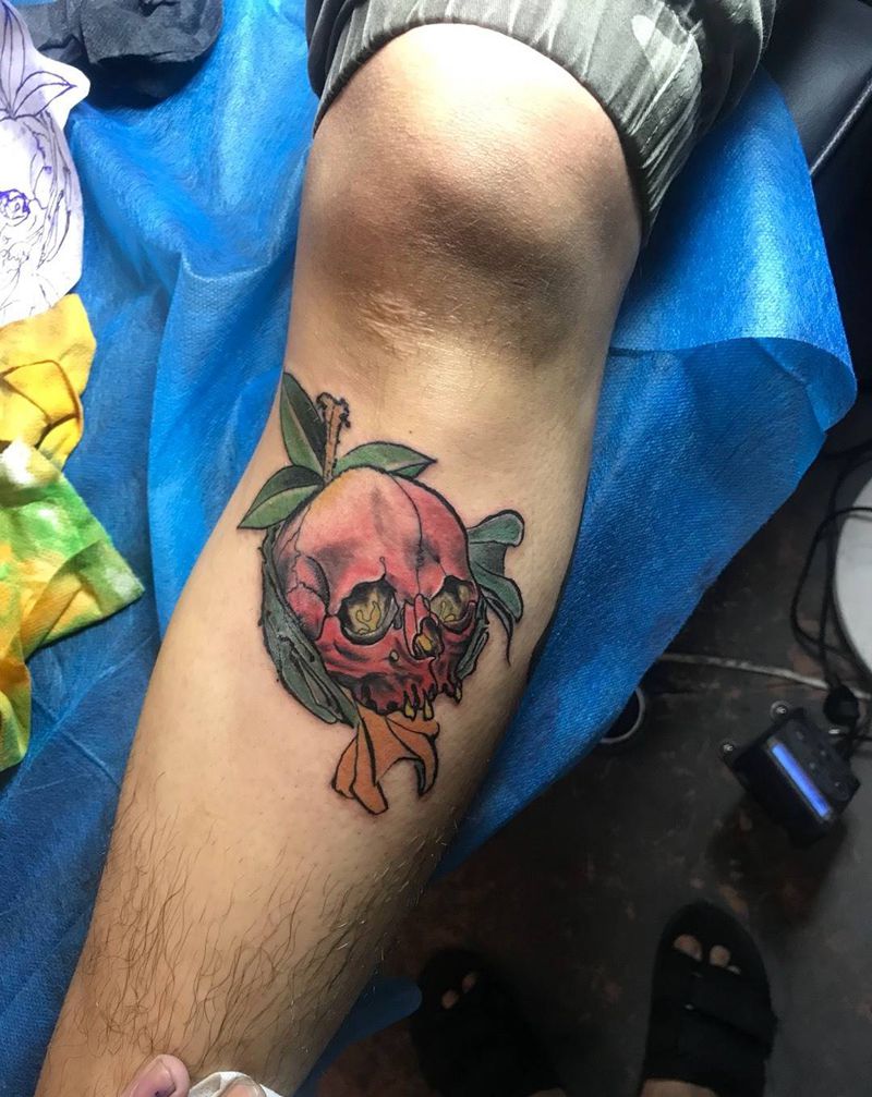 当前位置: 首页 >广东省广州市纹身店-虚妄刺青纹身图案>骷髅头纹身图片_腿部纹身图案