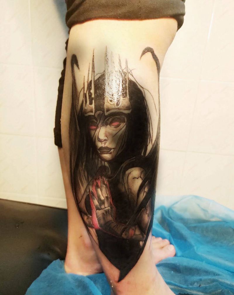 • T网红王老大花腿龙纹身图片_腿部新传统纹身图案
