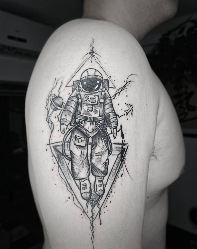 宇航员星座纹身图片_手臂腿部点刺图腾暗黑纹身图案