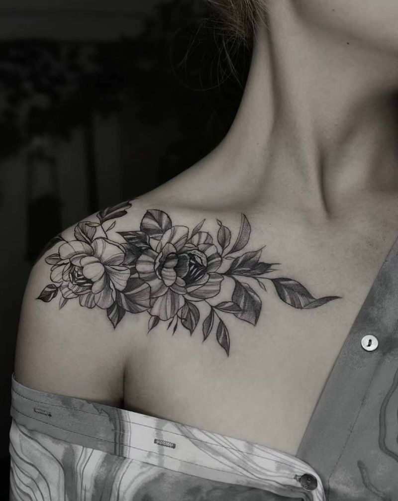 • 女性大花胸纹身_43张霸气漂亮的女性大花胸纹身图案作品