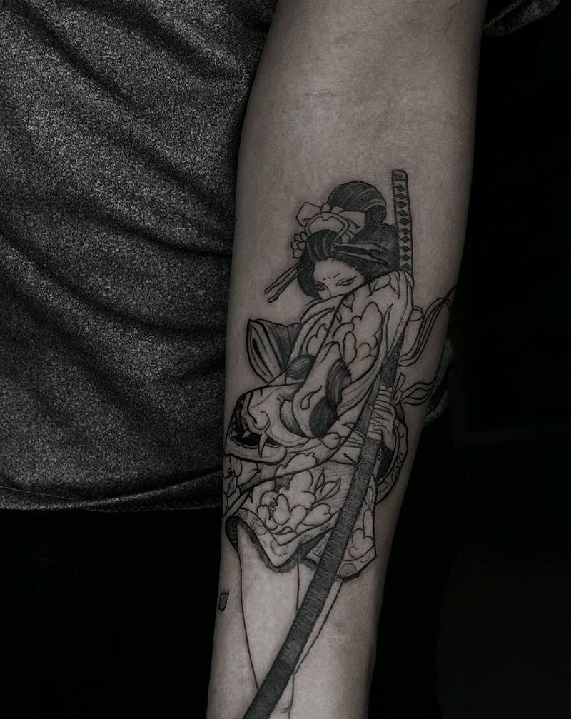 当前位置: 首页 >广东省广州市纹身店-疯也刺青纹身图案>艺伎纹身图片_手臂新传统Old School纹身图案