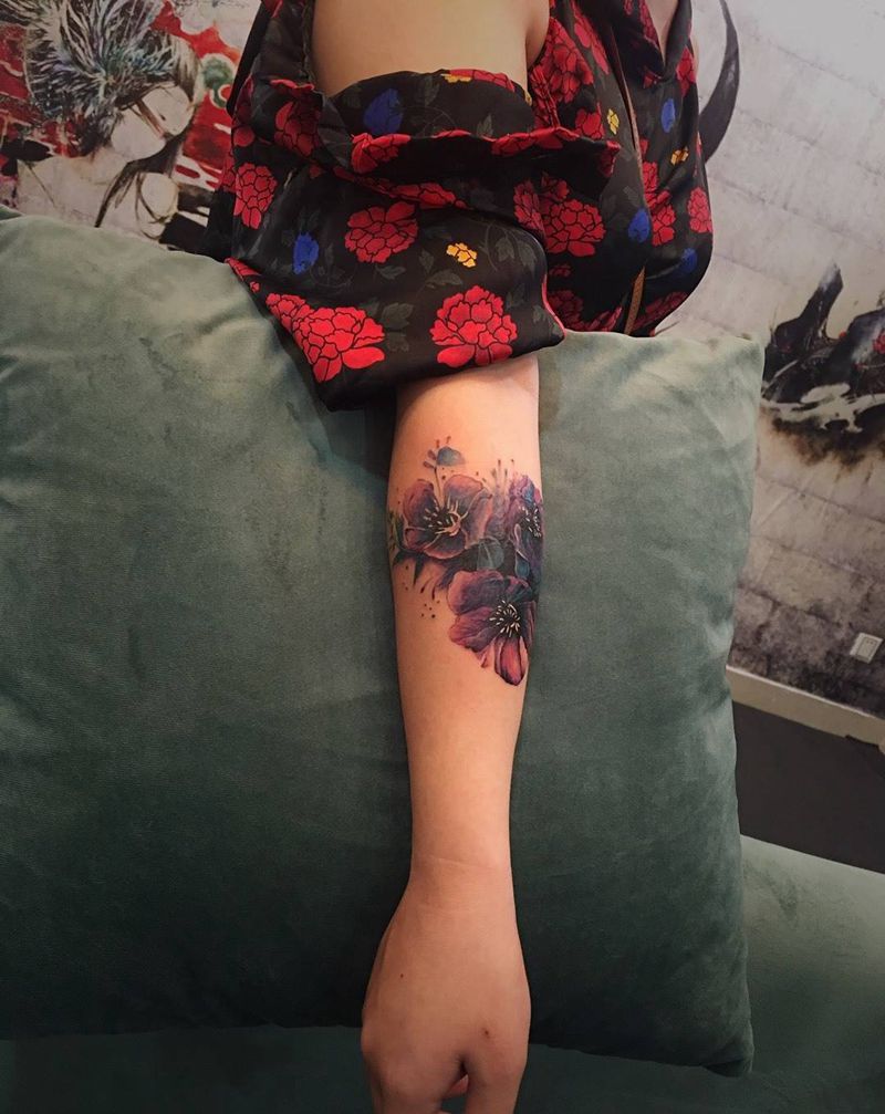 水彩遮盖纹身图片_手臂水彩纹身图案