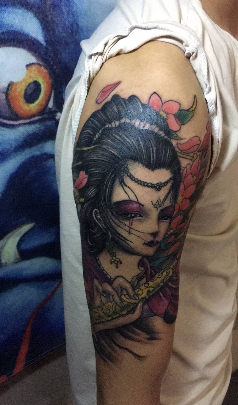 当前位置: 首页 >广东省广州市纹身店-龙马刺青纹身图案>手臂艺妓纹身图片_成品手部手臂传统人物纹身图案