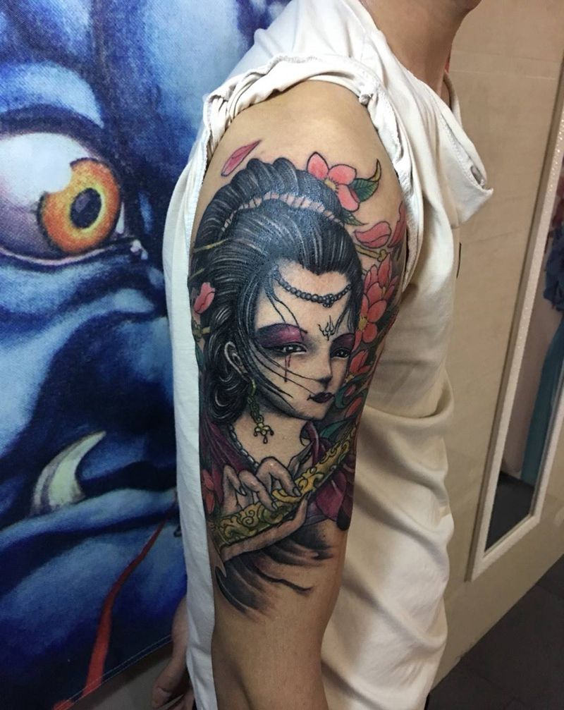 当前位置: 首页 >广东省广州市纹身店-龙马刺青纹身图案>手臂艺妓纹身图片_成品手部手臂传统人物纹身图案