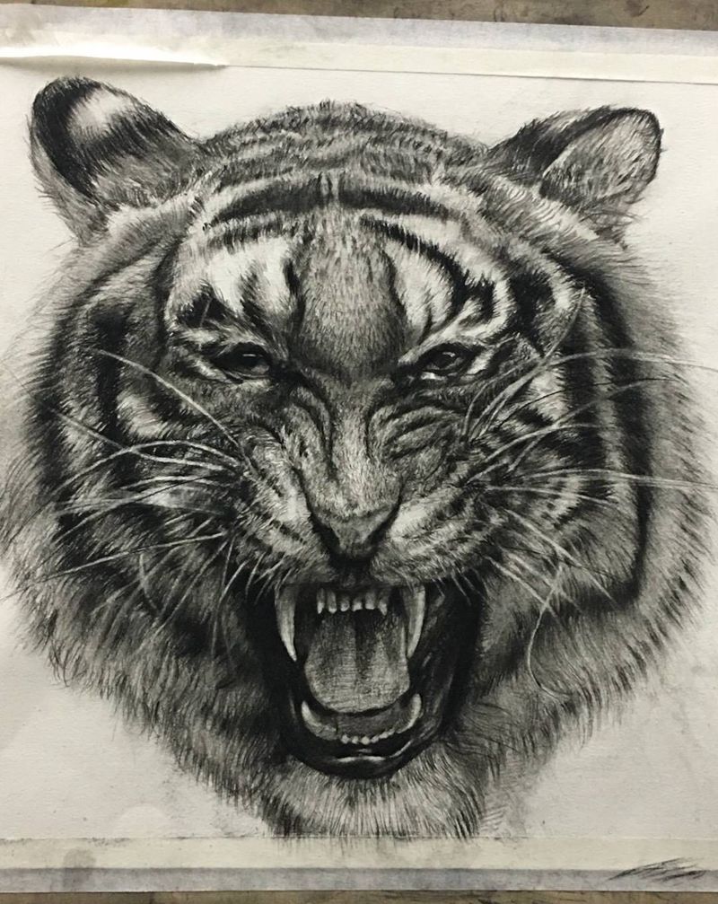 当前位置: 首页 >广东省广州市纹身店-龙马刺青纹身图案>老虎头手稿纹身图片