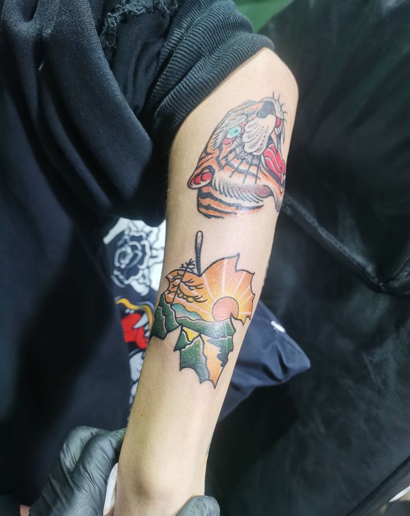 当前位置: 首页 >广东省广州市纹身店-赤艺old schooltattoo纹身图案>old school 虎守与枫纹身图片_手部Old School虎头与枫叶纹身图案