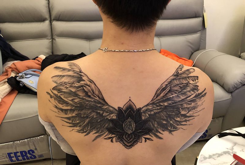 天使之翼(未完结)纹身图片_背部点刺拉点纹身图案