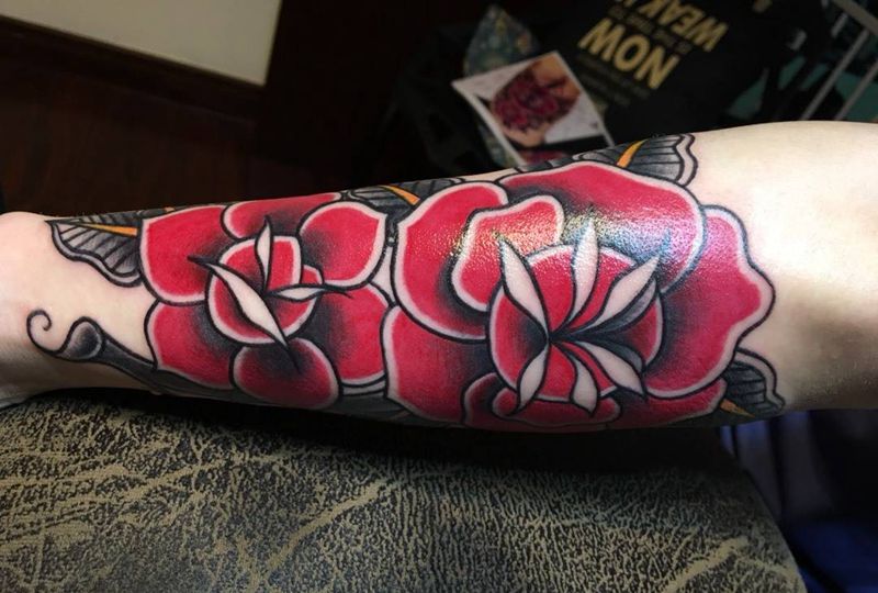 玫瑰纹身图片_手部Old School纹身图案