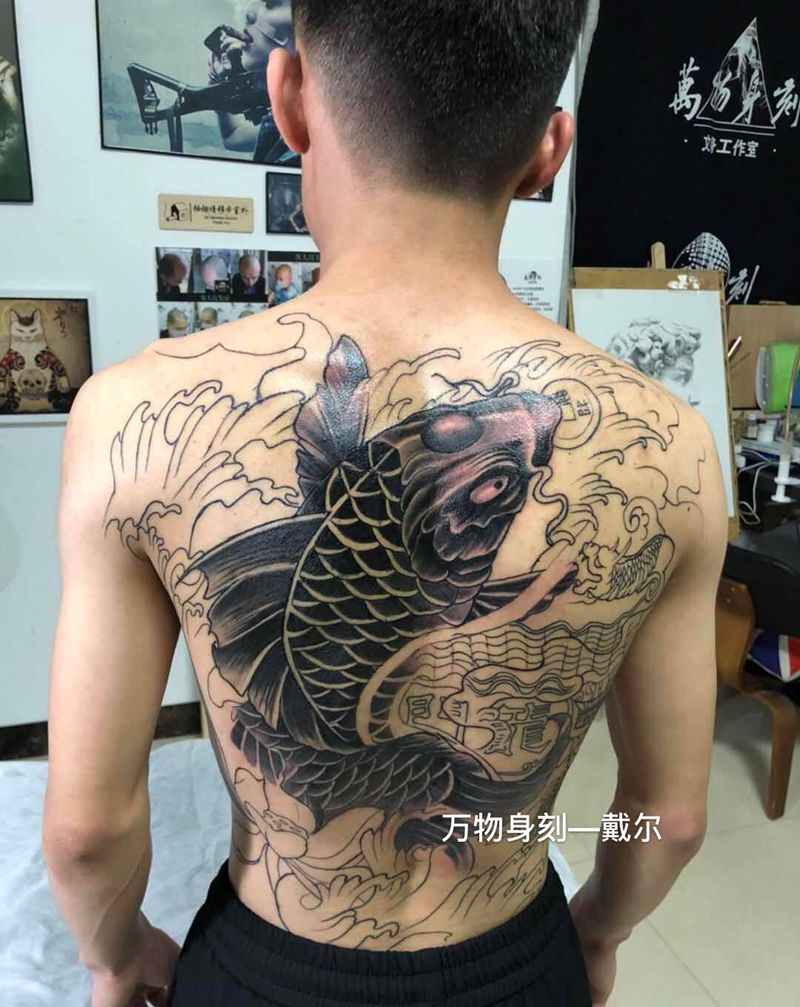 当前位置: 首页 >广东省广州市纹身店-四方纹印刺青纹身图案>鲤鱼跃龙门纹身图片_背部腿部老传统新传统纹身图案