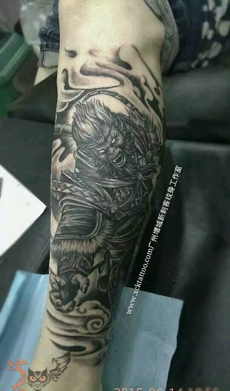 当前位置: 首页 >广东省广州市纹身店-增城新刺客纹身工作室纹身图案>你是猴子派来的救兵吗??纹身图片_腿部传统鬼神纹身图案