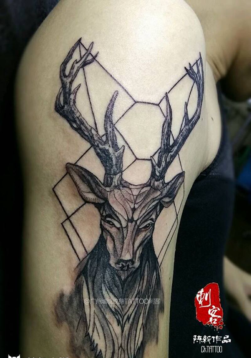 当前位置: 首页 >广东省广州市纹身店-增城新刺客纹身工作室纹身图案>鹿头纹身图片