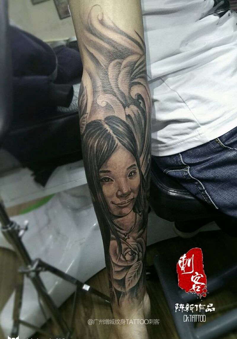 当前位置: 首页 >广东省广州市纹身店-增城新刺客纹身工作室纹身图案>肖像包臂纹身图片