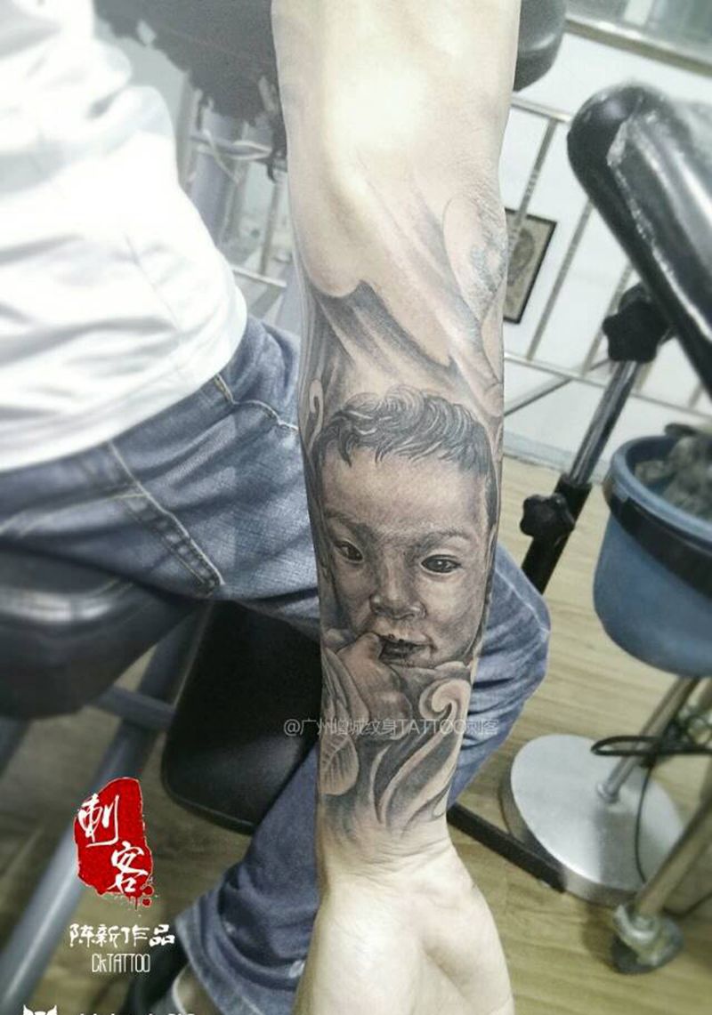 当前位置: 首页 >广东省广州市纹身店-增城新刺客纹身工作室纹身图案>肖像包臂纹身图片
