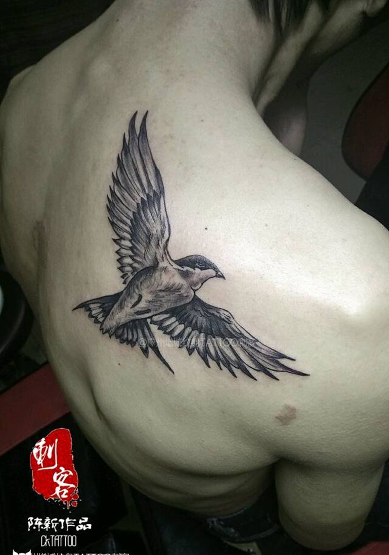 黑灰满背纹身图案