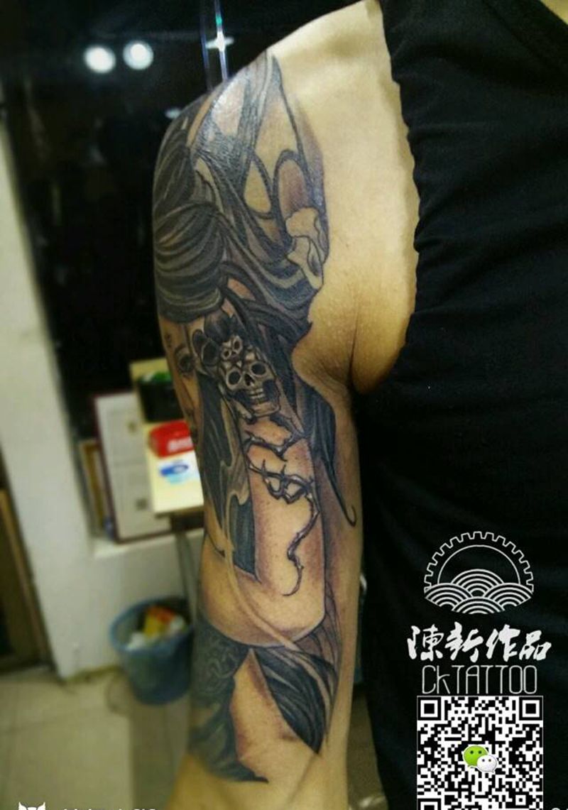 当前位置: 首页 >广东省广州市纹身店-增城新刺客纹身工作室纹身图案>艺妓花臂纹身图片