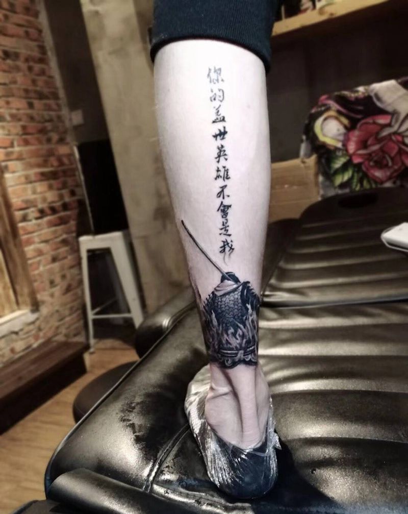 • T网红王老大花腿龙纹身图片_腿部新传统纹身图案