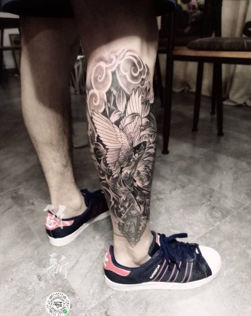 • T网红王老大花腿龙纹身图片_腿部新传统纹身图案