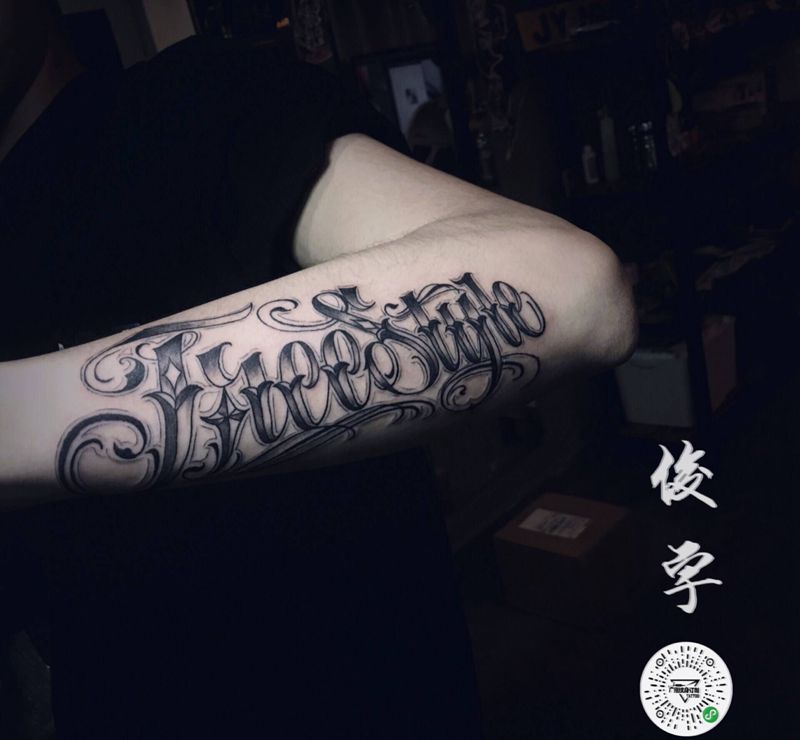 当前位置: 首页 >广东省广州市纹身店-广州增城新刺客纹身工作室纹身图案>花体纹身图片_手臂花体字纹身图案