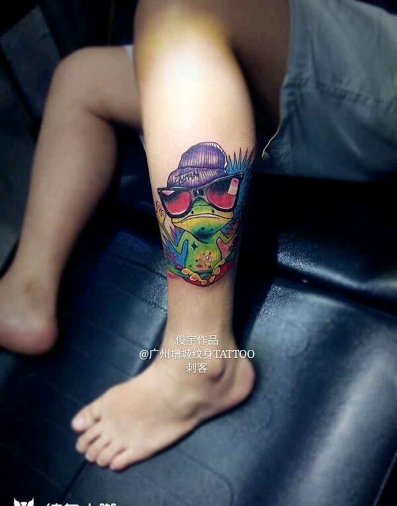 • T网红王老大花腿龙纹身图片_腿部新传统纹身图案