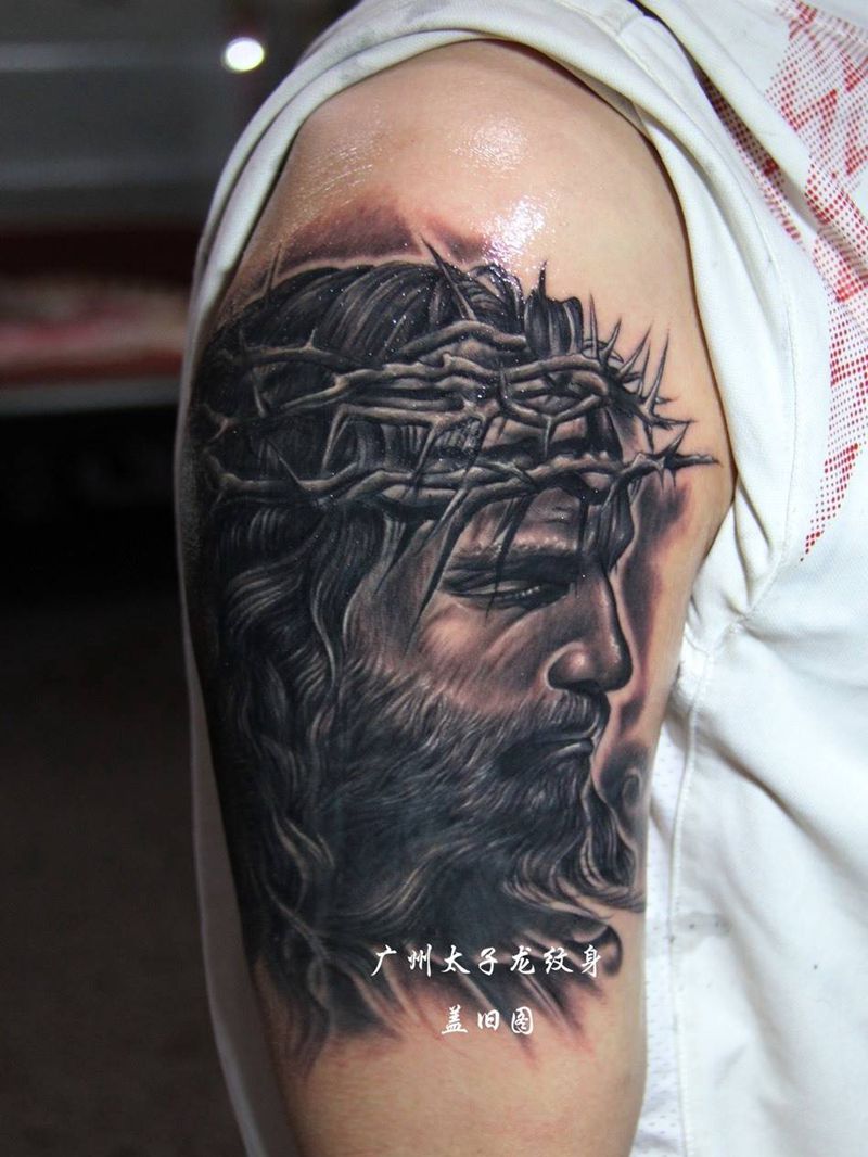 当前位置: 首页 >广东省广州市纹身店-广州纹身太子龙纹身纹身图案>耶稣纹身。纹身图片_成品手臂手部欧美肖像写实原创纹身图案