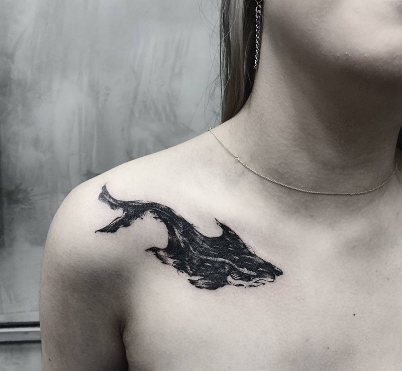 遮盖纹身图片_胸部水墨欧美写实纹身图案