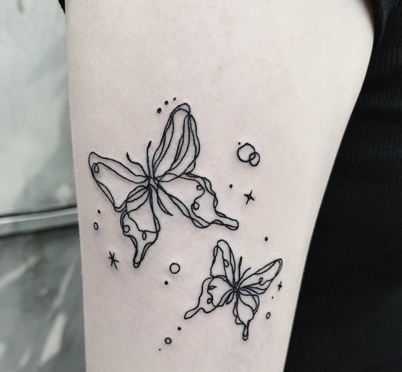 当前位置: 首页 >广东省广州市纹身店-泰塔凸纹身馆纹身图案>抽象派蝴蝶纹身图片_手臂几何纹身图案