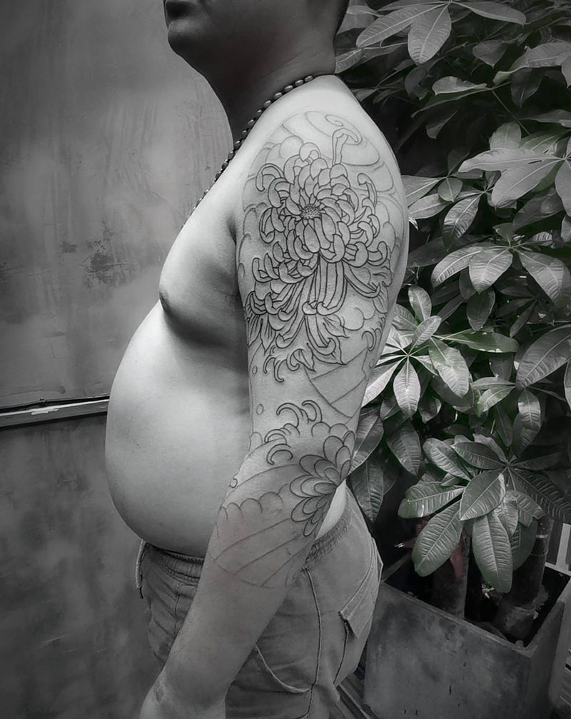 当前位置: 首页 >广东省广州市纹身店-泰塔凸纹身馆纹身图案>日式七分袖纹身图片_手臂老传统日式七分袖花臂纹身图案