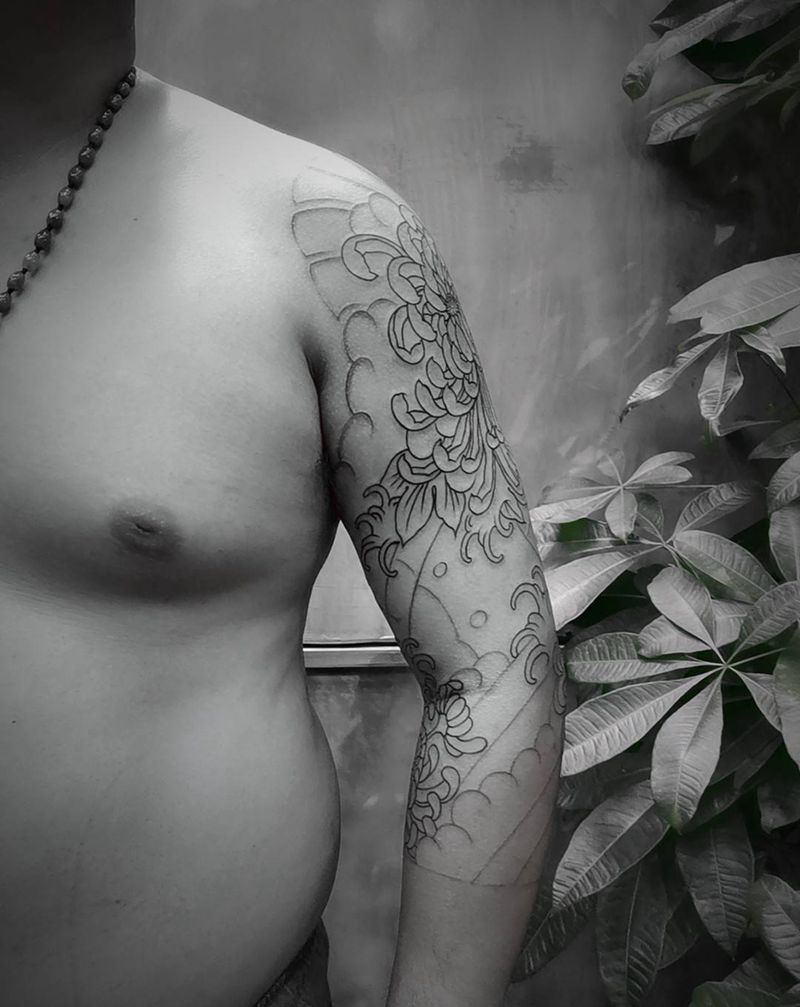 当前位置: 首页 >广东省广州市纹身店-泰塔凸纹身馆纹身图案>日式七分袖纹身图片_手臂老传统日式七分袖花臂纹身图案