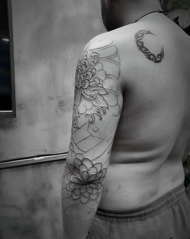 当前位置: 首页 >广东省广州市纹身店-泰塔凸纹身馆纹身图案>日式七分袖纹身图片_手臂老传统日式七分袖花臂纹身图案