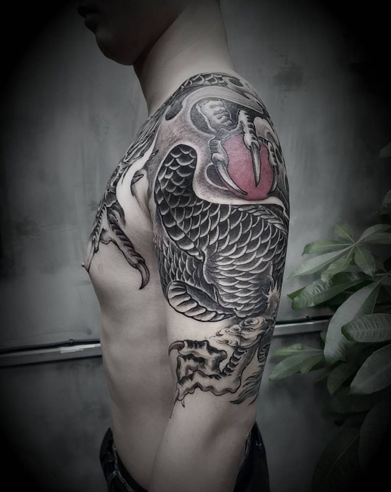 半胛龙修改纹身图片_手部胸部新传统龙半胛传统纹身图案