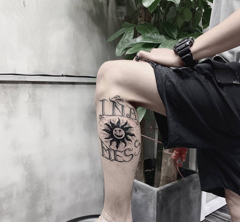 当前位置: 首页 >广东省广州市纹身店-泰塔凸纹身馆纹身图案>旧图修改纹身图片_腿部花体字花体字旧图新作太阳纹身图案