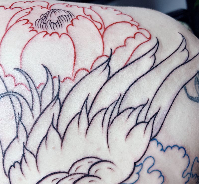 当前位置: 首页 >广东省广州市纹身店-泰塔凸纹身馆纹身图案>松鹤延年纹身图片_背部新传统仙鹤松树牡丹纹身图案