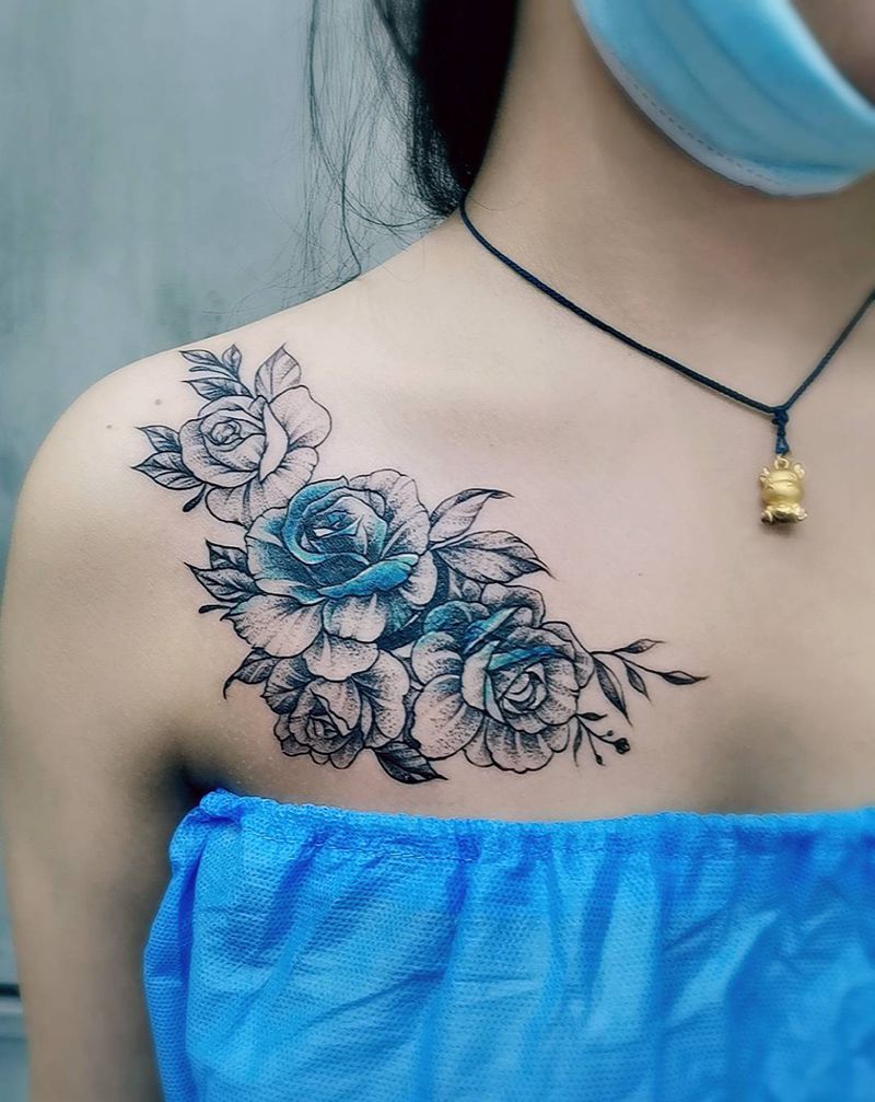 • 女性大花胸纹身_43张霸气漂亮的女性大花胸纹身图案作品